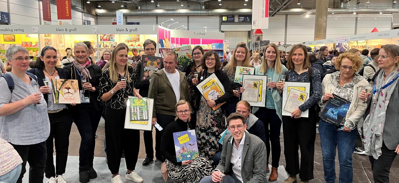 Foto: EMYS-Sachbuchpreis-Preisverleihung auf der Leipziger Buchmesse ǀ Monatspreisträger, Jahres-EMYS 2022 und Mitglieder der EMYS-Jury © proWissen Potsdam e.V.