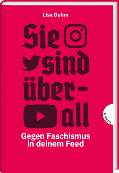 Lisa Duhm (Autorin), Eva Jung (Illustratorin): Sie sind überall – Gegen Faschismus in deinem Feed, Gabriel Verlag, 2021, ISBN 978-3-522-30593-8, 15 €, ab 12 Jahre
