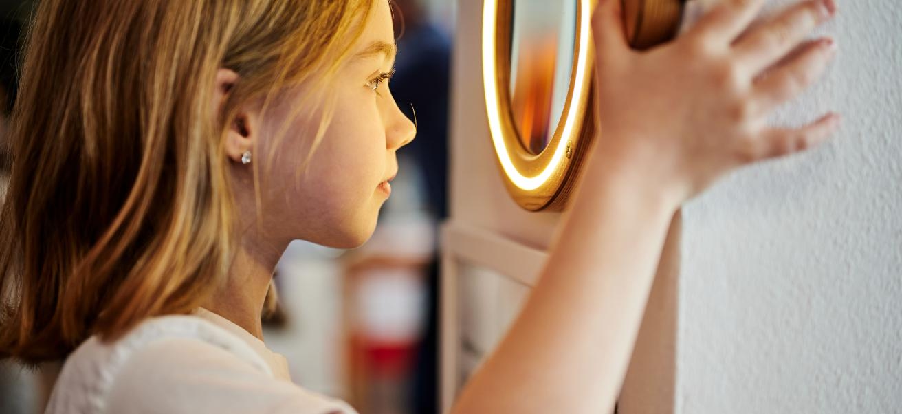 An der Wärmebild-Selfiewand könnt ihr euch einzeln oder in der Gruppe als Thermobild „einfrieren“ und fotografieren. An der Schokokuss-Pumpe erfahrt ihr, wie sich ein Schaumkuss im Vakuum verhält. Der Podcaststuhl überträgt den Schall direkt auf den Schädelknochen und somit hinein ins Ohr, ganz ohne Kopfhörer. Unsere schlauen Mäuse zeigen euch, dass sie sich im Labyrinth wesentlich besser zurechtfinden als wir Menschen. Und noch viele weitere Exponate warten darauf, von euch entdeckt zu werden.