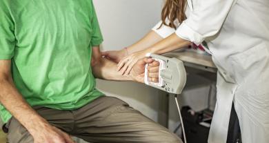 ►Proband bei der Messung der Handgreifkraft (Foto: Carolin Schrandt/DIfE)