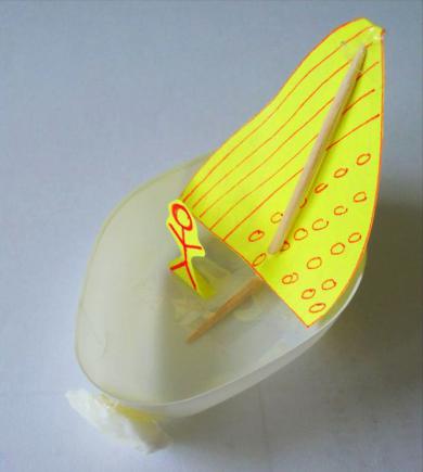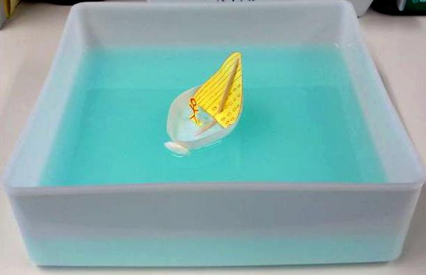 • Fülle eine Schüssel mit Wasser und setzte das Schiffchen vorsichtig auf das Wasser