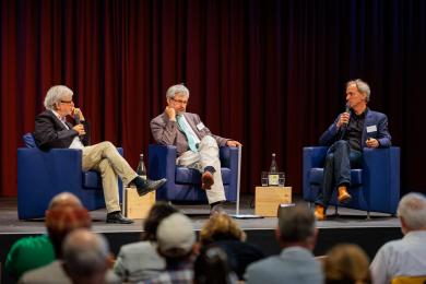 Foto: Podiumsdiskussion mit Ortwin Renn (RIFS), Minister Axel Vogel und Bernd Hirschl (IÖW). © RIFS/Reinhardt & Sommer