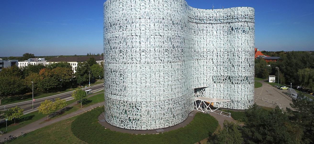 Foto: Blick auf das Informations-, Kommunikations- und Medienzentrum am Zentralcampus Cottbus der BTU Cottbus–Senftenberg.