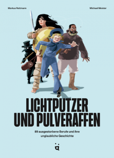 Markus Rottmann (Autor), Michael Meister (Illustrator): Lichtputzer und Pulveraffen: 88 ausgestorbene Berufe und ihre unglaubliche Geschichte, Helvetiq Verlag, April 2023; ISBN 978-3907293942, 88 Seiten, 18,90 Euro, ab 8 Jahren