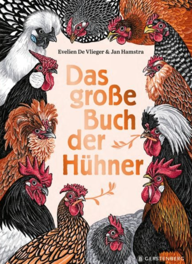 Evelien De Vlieger (Text), Jan Hamstra (Ill.): Das große Buch der Hühner, Gerstenberg Verlag 2025, ISBN 978-3-8369-6331-2, 80 Seiten, 29€, ab 8 Jahren