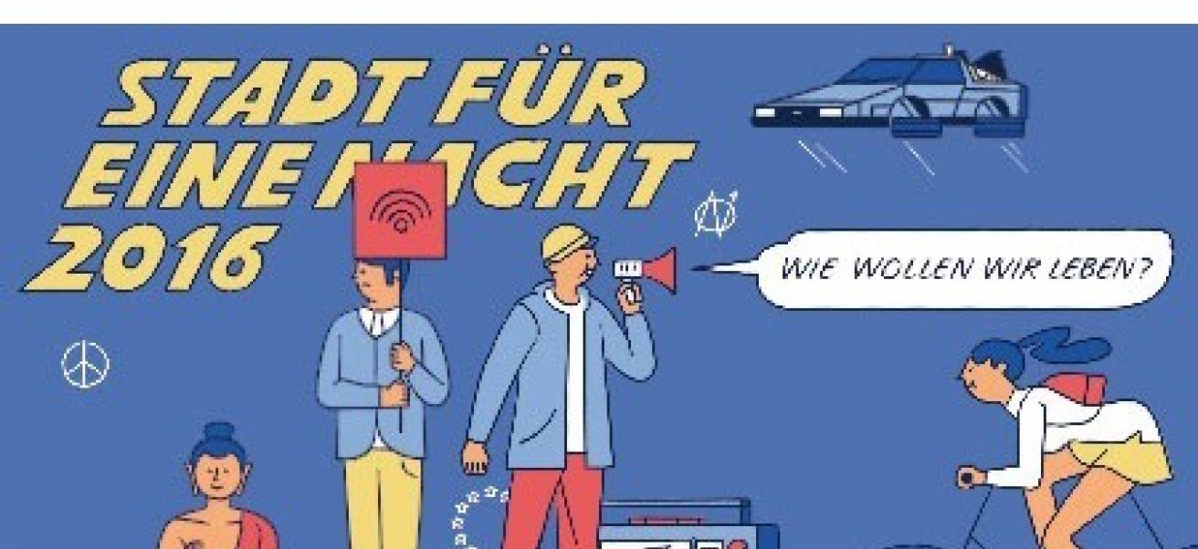 „ZUKUNFTSMUSIK – Wie wollen wir leben?“ Diese spannende und tiefgreifende Frage ist das Motto der STADT FÜR EINE NACHT 2016. Die 29 Bewohner, die am Samstag in die Stadt auf Zeit einziehen, setzen sich spielerisch und nachhaltig mit ihr auseinander und laden die Besucher/innen ein, ihre Ideen kennenzulernen, Experimente auszuprobieren und Themen, die bewegen, mitzudiskutieren.