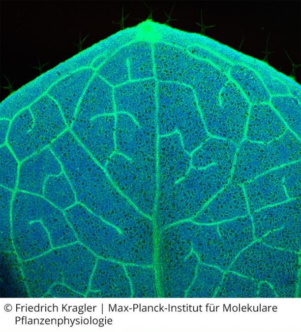 hier: Sichtbarmachen von Stofftransporten entlang der Gefäßbündel bei Arabidopsis thaliana.