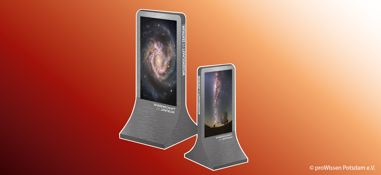 Der Verein proWissen Potsdam informiert im Rahmen des Wissenschaftsjahres 2023 - Unser Universum anhand von Stelen am Alten Markt, Podcasts, Veranstaltungen und Schülerakademien über die Faszination der Milchstraße.